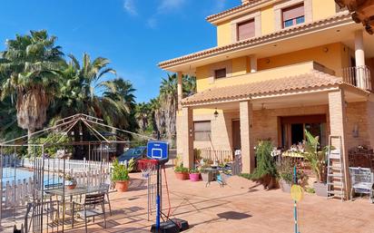 Espectacular chalet ubicado en un entorno privilegiado y rodeado de naturaleza, cerca del monte y en plena huerta murciana, con la ventaja de estar muy cerca del centro urbano de Beniaján, a una paso de la urbanización Monteazahar, lo que te brinda la comodidad añadida de acceder a todos los servicios necesarios en el día a día. Por tanto, este maravilloso hogar te brinda la tranquilidad que tanto deseas, además de comodidades excepcionales. Está ubicado sobre una parcela vallada de más de 7.000 m² plantada de cítricos especialmente como naranjos, pomelos y limoneros, y también de otros árboles frutales, además de múltiples palmeras de la variedad Whashingtonia de gran porte. Dispone de una amplia piscina de más de 60 m², que cuenta con depuradora, y una zona de barbacoa perfecta para reuniones al aire libre con familiares y amigos. La vivienda consta de una superficie total construida de 550 m² distribuidos en 4 plantas: Planta sótano destinada a recreo, donde encontrarás un amplio salón con chimenea y barra con bodega, zona de comedor, trastero con puerta corredera y despensa con cámara frigorífica. Planta baja, con un acogedor vestíbulo, un luminoso y amplio salón comedor con chimenea y con acceso a una terraza/porche, amplia cocina, distribuidor, 2 dormitorios, el principal con vestidor, y dos baños, uno de ellos en suite. Planta primera, con 4 amplios dormitorios con armarios empotrados cada uno de ellos, 2 baños, uno con bañera de hidromasaje y otro con pie de ducha, y 2 terrazas cubiertas. Y planta segunda, con una buhardilla totalmente diáfana con terraza. Todas las planta están unidas entre sí mediante escalera interior y ascensor lo que, sin duda, te facilitará el acceso a las mismas, haciéndote el día a día mucho más cómodo. La vivienda es especialmente luminosa y ventilada, ya que disfruta de todas las orientaciones, siendo la zona de estar la que está orientada a medio día, lo que la hace especialmente confortable en todas las épocas del año. Dispone de A/A centralizado frío/calor, calefacción central mediante caldera de gasoil, ventanas oscilobatientes, ventanales correderos, con doble acristalamiento y cierre de seguridad, y persianas eléctricas. Está construida en materiales de alta calidad y durabilidad. En la zona exterior dispone, además, de una construcción anexa destinada a lavadero y amplia zona de aparcamiento cubierta con marquesinas. Y dentro de la misma parcela existe un espacio frente a una de las fachadas de la casa destinado a huerto, con pajarera, estructura de invernadero y cuarto de aperos. La finca a la que pertenece dispone de pozo de riego propio, además de acceso al riego de la acequia. Una vivienda especial, en un entorno natural ideal. ¡ Para celebrar la vida!.