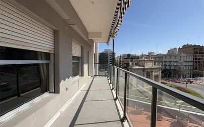 Espectacular vivienda en Puerta del Mar: Vistas monumentales y GARAJE incluido ¡ABSTENERSE INMOBILIARIAS! Venta directa de particular. Oportunidad única de adquirir una propiedad señorial de 270 m² en uno de los edificios más emblemáticos y distinguidos de Valencia. Ubicada en una tercera planta, esta vivienda destaca por su extraordinaria luminosidad y sus vistas panorámicas de 180° a la Plaza Puerta del Mar, los Jardines de la Glorieta y el majestuoso Palacio de Justicia. Distribución y Espacios Exteriores La vivienda cuenta con una distribución clásica y elegante que aprovecha al máximo su ubicación en esquina: Zona Social: Gran salón-comedor inundado de luz natural, con acceso directo a un amplio balcón tipo terraza que bordea la fachada y conecta con dos de las habitaciones, ofreciendo una panorámica inigualable del entorno monumental. Zona de Descanso: Suite Principal: Con vistas directas a la Puerta del Mar y al Palacio de Justicia, dos zonas de vestidor independientes, baño completo en suite y aire acondicionado por Split. 3 Habitaciones dobles: Todas exteriores, con armarios empotrados y vistas privilegiadas a la Glorieta (dos de ellas con salida directa a la terraza). Segundo baño completo con bañera para dar servicio al resto de la casa. Zona de Cocina y Servicio: Amplia cocina con dos despensas, zona de lavado independiente, entrada de servicio con montacargas, habitación de servicio y baño propio. Confort y Calidades Climatización: Calefacción centralizada mediante radiadores en todas las estancias. Aire acondicionado: Equipos tipo Split en el salón-comedor y en el dormitorio principal. Suelos: Moqueta de alta calidad en estancias principales y suelo técnico Flint en cocina y baños. Ventanas: Carpintería de aluminio de origen. Extras y Ubicación PLAZA DE GARAJE INCLUIDA: Situada a escasos metros del edificio, una comodidad indispensable en la zona más exclusiva de Valencia. Trastero: Incluido en la misma finca. Entorno: Ubicación irrepetible en el corazón de la ciudad, a un paso de la calle Colón, la Milla de Oro y el cauce del río Turia. Una propiedad con un potencial de reforma extraordinario para crear una residencia de lujo en la ubicación más cotizada de Valencia.