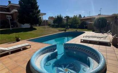 Magnifico chalet en Parque Coimbra, este magnífico chalet de 580m2 se encuentra en una de las mejores Urbanizaciones del sur de Madrid y de Móstoles, Parque Coimbra. La urbanización cuenta con todas las dotaciones próximas: supermercados, centro comercial, colegios, centro de salud, oficinas municipales, así como parada de autobús a Móstoles ? Madrid capital, y acceso directo a la A5. Se trata de un precioso chalet con jardín con riego automático por aspersión. En el mismo jardín encontramos una piscina con jacuzzi. Con una parcela de 1.500 m2, esta propiedad se encuentra en perfecto estado de conservación y es ideal para disfrutar de la vida en familia. Todas las estancias de la casa tienen muchísima luz gracias a los ventanales que posee toda la construcción. Este impresionante chalet cuenta con un amplio hall en la planta baja que da paso a un salón luminoso con dos zonas, una de TV con chimenea y otra de amplio comedor con acceso a una gran terraza. Una cocina totalmente equipada con zona de comedor y TV, también goza de mucha luz debido a los ventanales que dan al exterior y a un porche que accede al jardín. En esta misma planta un aseo y 2 habitaciones una de ellas en suite. En la planta de arriba accedemos mediante una preciosa escalera a un gran Hall que distribuye 4 habitaciones, una de ellas en suite y baño de ensueño. Todas las habitaciones tienen armarios empotrados. Arriba también hay una enorme terraza. En la planta sótano-garaje hay espacio para alojar 5 vehículos, un enorme baño, dos habitaciones muy amplias y una chimenea-barbacoa. Con todas las estancias equipadas con splits de aire acondicionado y calefacción por bomba de fríocalor, además de calefacción de Gas Natural general, este chalet no solo es espacioso sino también cómodo durante todo el año. Parque Coimbra es una población perteneciente al término municipal de Móstoles (Comunidad de Madrid), situada a 5 kilómetros por autovía de la propia ciudad de Móstoles. Enclavada en el límite