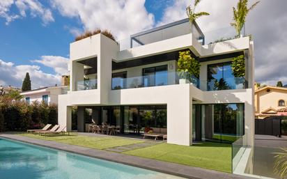Ubicada en una de las comunidades más codiciadas de Marbella, a escasos pasos de la playa, el icónico Marbella Club y el encantador casco antiguo, esta propiedad redefine el concepto de lujo costero. Rodeada de majestuosos pinos y exuberante vegetación, ofrece un entorno cerrado que combina privacidad, serenidad y exclusividad. En su interior, la tradición se encuentra con la innovación: candelabros de Murano, manillas de latón macizo y molduras artesanales aportan carácter y sofisticación, mientras un sistema de domótica de última generación permite gestionar la iluminación, la seguridad y hasta una plataforma giratoria en el garaje, todo desde una aplicación móvil. Distribuida en cuatro niveles, conectados por un ascensor dorado estilo champán, la villa ha sido concebida para una vida fluida y sin interrupciones. La entrada de doble altura conduce a amplios espacios de planta abierta, con techos revestidos en madera y ventanales de suelo a techo que inundan el ambiente de luz natural, creando una conexión perfecta con el jardín paisajístico. La cocina Siematic, equipada con electrodomésticos Gaggenau, se adapta a cada ocasión gracias a sus elegantes puertas correderas. Los espacios exteriores han sido diseñados para el disfrute durante todo el año. Una piscina climatizada de 17 metros, con cubierta solar anti-algas, se acompaña de una cocina al aire libre ideal para reuniones familiares y sociales. La azotea, con cocina completa, jacuzzi y vistas panorámicas al mar Mediterráneo y a La Concha, se convierte en el escenario perfecto para cenas al aire libre. El nivel inferior está dedicado al bienestar y el entretenimiento: gimnasio equipado con Technogym, sauna de vapor y finlandesa, sala de masajes, hidromasaje, una bodega climatizada y una kitchenette. El garaje, además de su plataforma giratoria, dispone de estaciones de carga para vehículos eléctricos, completando una propuesta de vida moderna y sostenible. Una residencia que combina a la perfección la esencia mediterránea con las más altas innovaciones tecnológicas, en una ubicación inigualable de Marbella.