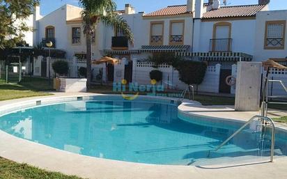 A SOLO 25 METOS DE LA PLAYA Casa adosada de 110 m2 en planta baja más una, sobre una parcela de 140 m2 haciendo esquina a tres calles, orientacion sur, todo exterior, bus en la puerta, mercadona 100 metros. Zona residencial muy tranquila, 20 vecinos que comparten piscina, tenis y amplias zonas ajardinadas en un conjunto cerrado, comunidad muy baja. Dispone de 3 dormitorios, armarios empotrados, 2 baños, cocina indepemdiente, salón comedor con acceso a patio privado, zona de barbacoa y plaza de apracamiento en el interior de la parcela privada.