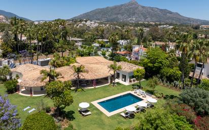 Ubicada en el corazón de La Cerquilla, esta villa orientada al sur se asienta sobre una parcela llana de 3.081 m², ofreciendo privacidad, vistas parciales al golf y una elegante vida en una sola planta con 603 m² construidos. La propiedad fue renovada completamente en 2013 y actualizada nuevamente en 2024 con especial atención a los acabados, detalles y diseño paisajístico. La propiedad está rodeada de un jardín botánico cuidadosamente diseñado, con una selección de especies maduras y exóticas. Elementos como ficus de gran tamaño, jacarandas, palmeras, cícadas y plantas tropicales con floración definen las zonas exteriores, ofreciendo estructura y profundidad visual durante todo el año. El paisajismo está pensado para la privacidad, bajo mantenimiento y variedad estacional. La distribución de la villa permite una transición fluida entre las zonas interiores y exteriores. La entrada conduce a una sala de estar central con acceso directo a una terraza cubierta envolvente y al jardín. Una cocina abierta con isla central conecta de forma fluida con dos zonas de comedor, una interior y otra exterior bajo la terraza cubierta. Los cinco dormitorios tienen acceso directo al jardín. La suite principal incluye baño en suite, vestidor privado y ventanales de suelo a techo. Un segundo dormitorio en suite también se conecta con el jardín. Otros tres dormitorios ofrecen privacidad y baño propio. Los espacios interiores incluyen dos salones, un estudio y una sala de lectura. Los materiales naturales, las líneas limpias y los tonos neutros aportan un ambiente equilibrado y sereno. Las características funcionales incluyen garaje para cuatro vehículos, entrada privada con portón, cristales de seguridad, sistema de iluminación integrado y reserva de agua. La vivienda se encuentra en una zona residencial consolidada, cerca de campos de golf, colegios internacionales y Puerto Banús. Características destacadas • Renovada en 2013 y actualizada en 2024 • Parcela llana de 3.062 m² con jardinería botánica • 603 m² construidos en una sola planta • Orientación sur con vistas parciales al golf • Cocina abierta con dos comedores • Dos salones, estudio y sala de lectura • Terraza cubierta para uso durante todo el año • Entrada privada con aparcamiento para cuatro coches • Cercanía a golf, colegios y Puerto Banús