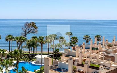 Espectacular Atico Duplex ubicado en una de las más prestigiosas urbanizaciones en primera línea en Estepona. Esta vivienda cuenta con la combinación ideal entre lujo y confort. Se encuentra en la tercera y cuarta planta, lo cual lo dota de unas espectaculares vistas y de muchísima luminosidad durante todo el día. El apartamento nos recibe con un amplio hall que da paso a una gran salón comedor con salida a una preciosa terraza con unas vistas preciosas; cuenta con una cocina totalmente amueblada y equipada, con zona de lavandería; dos dormitorios, el principal con baño en suite y un aseo para invitados. En la planta superior se encuentra el segundo dormitorio, un baño completo y una impresionante terraza con piscina privada, ideal para relajarse con unas vistas increibles al Mar. La vivienda incluye garage y trastero. La urbanización cuenta con jardines, piscina comunitario exterior e interior y gym. Nota: * El PVP indicado no incluye impuestos, ni gastos de Notaría y Registro. * Las superficies expresadas en esta página tienen carácter descriptivo y son aproximadas. Tu ilusión,en buenas manos. www.real72inmobiliaria.com