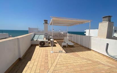 Maravilloso piso dúplex, situado en pleno casco antiguo de Rota y en primera linea de playa. Vivienda con excelente luz natural y estancias amplias. Prácticamente a estrenar ya que es de construcción reciente. Consta de tres dormitorios, uno de ellos en la planta baja con baño en suite, aire acondicionado en todas sus estancias y dos terrazas con solárium del que poder disfrutar de sus espectaculares vistas al mar. Además, cuenta con un trastero de 54 m2. ¿Quieres saber más? Ven a visitar esta vivienda de ensueño! . . *Se le informa al cliente que los gastos notariales, regístrales, ITP, honorarios de la agencia y otros gastos inherentes a la compraventa no están incluidos en el precio.