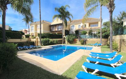 Impecable y espaciosa villa adosada ubicada en la zona baja de Elviria, dentro de una encantadora urbanización privada de tan solo 10 viviendas. Goza de una ubicación ideal, a poca distancia a pie de la playa y de todos los servicios locales, incluido el centro comercial de Elviria.La planta baja ofrece un luminoso salón-comedor con chimenea, que se abre a un amplio invernadero orientado al sur y a un jardín de bajo mantenimiento con vistas a la piscina comunitaria. También cuenta con una amplia cocina recientemente reformada, con acceso a una terraza y un aseo de cortesía. La terraza dispone de persianas y toldos eléctricos.En la planta superior, encontrará tres dormitorios de buen tamaño. Dos de ellos comparten un baño, mientras que el dormitorio principal cuenta con vestidor con amplios armarios empotrados y baño en suite.Hay espacio para aparcar dos coches justo delante de la propiedad, dentro de la urbanización privada.En las inmediaciones se encuentran el Club de Golf y Campo Santa María, un gran pinar ideal para pasear perros y el parque de aventuras Aventura Amazonia.A tan solo 10 minutos del centro de Marbella y a 25 minutos del aeropuerto de Málaga, se trata de una casa ideal para familias o para vacaciones, en una ubicación privilegiada.
