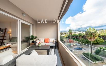 Encantador apartamento ubicado en una de las zonas más demandadas de Nueva Andalucía. Con orientación noroeste y unas encantadoras vistas a la montaña, esta vivienda ofrece comodidad, amplitud y una excelente calidad de vida. Dispone de 3 dormitorios con armarios empotrados, todos ellos con ventana exterior, además de 2 baños completos, terraza exterior muy luminosa y una terraza interior junto a la cocina, perfecta como zona de lavandería. El apartamento cuenta con aire acondicionado centralizado y calefacción, lo que garantiza confort durante todo el año. Incluye plaza de parking y trastero, un valor añadido que aporta comodidad y espacio extra. Con Piscina en la parte de arriba del edificio. Una vivienda ideal tanto para residencia habitual como para disfrutar de estancias vacacionales en un entorno tranquilo y bien comunicado, a pocos minutos de Puerto Banús y de todos los servicios.