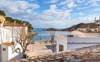 Frente al mar en Sa Tuna, con terraza panorámica y garaje propio: casa mediterránea auténtica a solo unos pasos de la playa. Dos plantas con garaje y terraza con vistas al mar Vivienda unifamiliar de 251 m² construidos sobre una parcela de 132 m². Se distribuye en dos plantas, con el garaje en la planta baja. Dispone de cuatro dormitorios y tres baños, lavadero y trastero. Construida en 1994 y en buen estado, mantiene una estructura clara y funcional para una segunda residencia junto al mar. Terraza superior con vistas a la cala La planta superior se remata con una estupenda terraza de aprox. 35 m² orientada al noreste, desde la que se ve la cala de Sa Tuna y el Mediterráneo. Dispone de pérgola de madera y lavamanos, lo que facilita su uso en temporada. Se accede desde el interior por la escalera que comunica las plantas principales y el garaje, convirtiéndola en el principal espacio exterior elevado de la casa. Salón con piedra vista y salida posterior La planta principal alberga el salón-comedor, organizado en torno a un muro estructural de piedra vista y con vistas abiertas a la playa y al mar. La cocina se encuentra separada del salón y dispone de salida directa al patio posterior. En esta planta se sitúan dos dormitorios tipo suite, cada uno con su cuarto de baño privado, y uno de ellos con un amplio armario empotrado. En la planta baja, junto al garaje, se encuentran los otros dos dormitorios y un baño completo compartido. Una escalera conecta ambas plantas y da acceso a la terraza situada en la parte superior de la vivienda. Materiales tradicionales y equipamiento funcional La vivienda conserva acabados coherentes con su época, con pavimentos cerámicos y carpintería exterior de madera. Dispone de calefacción por radiadores de agua y estufa de leña en el salón, lo que permite su uso durante todo el año. Los baños y la cocina presentan un estado correcto y operativo. A un minuto de playa Sa Tuna La casa está en primera línea real de mar en Sa Tuna, a unos 40 metros de la playa y con acceso inmediato a la cala. Desde la vivienda se llega caminando en un minuto al agua, lo que permite prescindir del coche en el día a día de verano. Begur se alcanza en aproximadamente 12 minutos en coche y en menos de media hora se accede a playas como Sa Riera, Aiguablava o Tamariu, facilitando alternar distintos entornos según el día. Girona y su aeropuerto se sitúan a menos de una hora y Barcelona en torno a hora y media, lo que refuerza su viabilidad como segunda residencia bien conectada. Si estás valorando una casa en Sa Tuna, en primera línea y con garaje propio, te podemos ampliar la información y coordinar una visita para conocerla con detalle.