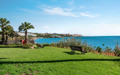 ADOSADO EN PRIMERA LÍNEA DE PLAYA – UBICACIÓN PREMIUM EN BAHÍA AZUL, ESTEPONA Oportunidad única de adquirir un exclusivo adosado en una de las urbanizaciones más cotizadas en primera línea de playa en Estepona Oeste. Esta luminosa vivienda orientada al sur ofrece una combinación perfecta de confort, ubicación y estilo de vida mediterráneo, con acceso directo a la playa y al paseo marítimo. La propiedad dispone de 3 dormitorios, incluyendo un dormitorio principal en suite, un amplio salón-comedor con chimenea, cocina independiente totalmente equipada y varias terrazas ideales para disfrutar del clima privilegiado de la Costa del Sol durante todo el año. Desde la planta superior se aprecian agradables vistas al mar, mientras que en la planta principal se disfruta de acceso directo a los jardines y zonas comunes. Ubicada en una urbanización cuidada con jardines tropicales, dos piscinas comunitarias (una de ellas en primera línea de playa) y acceso directo al mar. ✔ Plaza de aparcamiento privado ✔ Acceso directo a la playa ✔ Urbanización consolidada y tranquila ✔ A pocos minutos del puerto de Estepona y servicios Una propiedad ideal como residencia permanente, segunda vivienda o excelente inversión con alta demanda en alquiler vacacional. Vive el auténtico lujo de estar junto al mar.