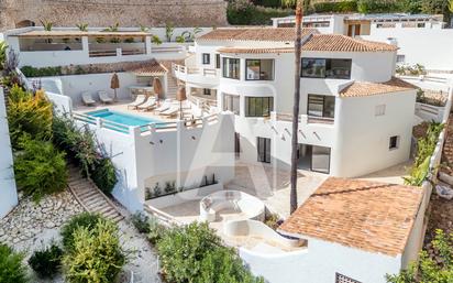 Villa de estilo ibicenco en venta en Benissa, en urbanización Montemar, situada en una zona residencial consolidada, a 2 Km de todo tipo de servicios (centro comercial Pepe La Sal, tiendas, restaurantes…), a 2,1 Km del mar (fabulosa Cala Baladrar) y a 2,8 Km de Cala Advocat, muy cerca de Moraira y de Calpe que ofrecen todo tipo de facilidades y comercios, servicios médicos, además de una amplia oferta de ocio y restauración. Disfruta de bonitas vistas panorámicas al mar y al Peñón de Ifach (símbolo de la Costa Blanca), de sol todo el día (orientación Sur) y de mucha tranquilidad (calle sin tráfico). Está villa de estilo ibicenco está ubicada en una parcela de 824 m2 y tiene una superficie total construida de 377 m2, distribuidos en 2 plantas y semisótano (vivienda principal y apartamento de invitados), de la siguiente manera: la vivienda principal se distribuye en 2 plantas, en la planta principal tenemos el hall de entrada, 1 aseo de cortesía, 2 dormitorios (16 m2 + 13 m2), 2 baños en-suite (el baño principal también tiene una elegante bañera independiente), y salón-comedor-cocina (concepto todo abierto, con isla, vinoteca, electrodomésticos de cocina de la marca Miele..., en conjunto 60 m2). En este mismo nivel también disponemos de una terraza con pérgola y una cocina exterior totalmente equipada incluyendo un Big Green Egg. Tanto por una escalera interior como por una escalera exterior accedemos a la planta baja donde tenemos un trastero, 2 dormitorios (24 m2 + 17 m2), 2 baños en-suite, un lavadero práctico, un espacio multiuso (ideal como salón, sala de relax, sala de juegos o segunda sala de estar), un espacio de trabajo en casa (espacio de biblioteca). Se accede a la planta semisótano por el exterior. En la planta semisótano tenemos un apartamento de invitados que consta de 2 dormitorios (13 m2 + 11 m2), 2 baños (1 en-suite), y salón-comedor-cocina (concepto todo abierto, electrodomésticos de cocina de la marca Siemens, en conjunto 46 m2), que se conecta con una terraza auxiliar donde tenemos una fabulosa cocina de verano totalmente equipada incluyendo un Big Green Egg, zona de comedor y zona de chill-out. Desde todas las plantas se accede a la terraza principal (el corazón de las terrazas), donde tenemos la piscina de forma rectangular de 28 m2, bar de piscina, 1 aseo, ducha exterior y zonas de relax. Además, cuenta con 2 amplios garajes (cada uno para 2 vehículos). Esta propiedad ibicenca ha sido totalmente reformada en el año 2025 y en la actualidad se ofrece como obra nueva. Está equipada con aire acondicionado (calor y frio), suelo radiante en los baños, instalación fotovoltaica... El jardín es bonito y a su vez de bajo mantenimiento. Esta propiedad destaca por su excelente ubicación, por sus bonitas vistas al mar y por sus volúmenes. Para recibir más información sobre esta propiedad, póngase en contacto con AREA Costa Blanca. AREA Costa Blanca - su agente para propiedades en venta en Benissa - Costa Blanca - España. AREA Costa Blanca está orgullosa de ser una de las mejores agencias inmobiliarias en la Costa Blanca. En AREA Costa Blanca trabajamos para ofrecer el mejor servicio asesorando a nuestros clientes en la compraventa de propiedades inmobiliarias. Contamos con un equipo profesional de larga experiencia en el sector inmobiliario. Nuestro principio fundamental es la calidad del servicio prestado y la satisfacción del cliente. Nuestra experiencia y actitud, su garantía de éxito.