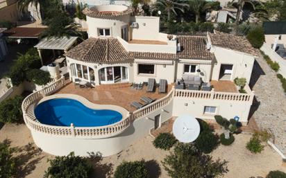 En la popular localidad costera de Calpe, en la provincia de Alicante, se encuentra esta encantadora villa de estilo mediterráneo, que ofrece espectaculares vistas al mar. DISTRIBUCIÓN: Planta baja: Recibidor, 2 dormitorios, 1 baño en suite con ducha y bañera, 1 baño con ducha, cocina completamente equipada y amueblada, salón, comedor, terraza acristalada con acceso a la terraza exterior y piscina. Escaleras internas conducen a la planta superior, donde encontrará un dormitorio con baño en suite y terraza. Desde ambas plantas, la villa ofrece vistas panorámicas al mar, al icónico Peñón de Ifach y a Calpe. Semisótano: Garaje. Construida en 2005, la villa está en perfecto estado, lista para entrar a vivir y disfrutar. EQUIPAMIENTO: Aire acondicionado frío y calor, calefacción central con radiadores, amplio aparcamiento exterior, terrazas exteriores y jardín. UBICACIÓN: Ubicada en una urbanización tranquila y residencial, con vecinos que residen prácticamente todo el año. A solo 4 minutos en coche de la playa de Levante, donde encontrará todo tipo de servicios: restaurantes, supermercados, tiendas, entre otros. Calpe es famosa por sus hermosas playas, su clima templado y su exquisita gastronomía. Es un destino turístico con una gran afluencia durante todo el año. ¡Contáctenos para más información o para solicitar una visita!