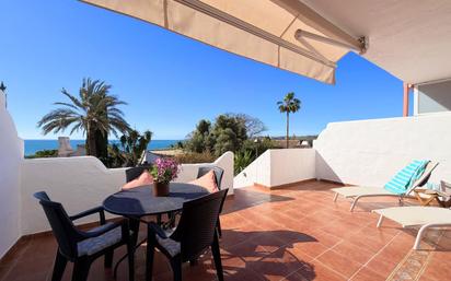 MAGNÍFICO APARTAMENTO CON BONITAS VISTAS AL MAR Y DOS AMPLIAS TERRAZAS. Situado en Casares Costa, a sólo 200 metros de la playa y a 5 minutos en coche del puerto deportivo de la Duquesa y de los numerosos campos de golf que rodean la zona. Esta preciosa vivienda en planta baja con altura ofrece una terraza principal orientada al sur, desde la que se puede disfrutar de vistas al mar y a los jardines, así como de luz solar y temperaturas agradables desde el amanecer hasta el final de la tarde. La segunda terraza, ubicada en la parte trasera con orientación oeste, es muy amplia y perfecta para disfrutar de la luz de la tarde y del espacio exterior. La vivienda se encuentra en perfecto estado, con baños y cocina recientemente reformados, y cuenta con aire acondicionado nuevo de alta eficiencia. Forma parte de una comunidad cerrada y privada, con jardines paisajistas y piscina para adultos y niños abierta todo el año. La propiedad incluye una plaza de aparcamiento privada exterior con acceso directo a la vivienda. ¡Una visita es totalmente recomendable!