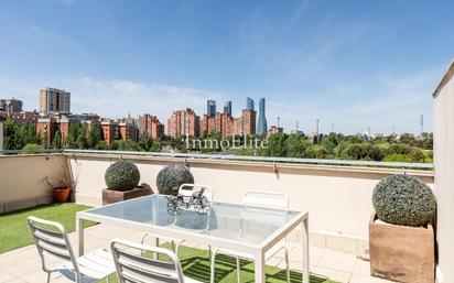 Te presentamos este IMPRESIONANTE ÁTICO TRIPLEX DE ESQUINA CON PISCINA PRIVADA ubicado en una de las zonas más privilegiadas de Madrid. Con 260 m² y dos terrazas este exclusivo ático cuenta con un diseño y privacidad únicos. En planta principal nos encontramos con un amplio salón-comedor con grandes ventanales que aportan una extraordinaria luz natural. La cocina de amplias dimensiones se encuentra totalmente amueblada con electrodomésticos de alta gama contando además con cuarto de lavandería. Desde ambas estancias tenemos acceso a una coqueta terraza ideal para disfrutar en nuestro día a día. Además la planta dispone de aseo de cortesía y armario gabanero. En planta baja un amplio hall aprovechado como despacho con puerta acristalada da acceso a 3 amplios dormitorios y cuarto de baño exterior con ducha. El dormitorio principal en suite destaca por su bonito ventanal, sus amplios armarios empotrados con luz interior, y cuarto de baño exterior con ducha y bañera de hidromasaje. Todas las estancias cuentan con persianas y estores motorizados blackout. Dispone de calefacción por suelo radiante y aire acondicionado por conductos sectorizado por plantas. En la planta superior encontramos un amplio hall que puede ser aprovechado para una estancia adicional dando acceso a una increíble terraza solarium a dos alturas con piscina privada. Una terraza que destaca por su privacidad y vistas panorámicas a las Cuatro Torres de Madrid. La vivienda cuenta con 2 plazas de garaje, una de ellas doble y cuarto trastero. Situada en una de las urbanizaciones más exclusivas de la zona con seguridad 24h, dispone de amplias zonas comunes, piscina comunitaria, gimnasio, sauna, vestuario y bonita zona infantil. Ubicada a escasos metros del Paseo de la Castellana, Isla Chamartín se ha convertido en todo un atractivo para los que buscan tranquilidad y comodidad. No dejes pasar la oportunidad de visitar este espectacular ático triplex. Para más información y para concertar una visita, contacta con nosotros en InmoElite Propiedades.