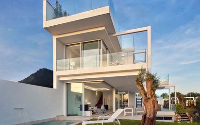 Proyecto contemporáneo e innovador Ocho espaciosas y luminosas villas de obra nueva en parcelas individuales. Todas ellas con jardín y piscina. Terminadas con magníficas calidades: Suelo radiante en toda la casa Ascensor Calidades PORCELANOSA Suelos de madera en la 1ª planta Las Villas La Planta Sótano es común. Aparcamientos, trasteros y entradas a cada una de las villas con ascensor independiente desde esta planta. Planta Patio: 2 habitaciones con luz natural proveniente de un patio inglés para gimnasio, cuarto de juegos, biblioteca, … y un cuarto de baño. Planta Baja: Salón-Comedor-Cocina, un gran espacio diáfano elegante y funcional y un aseo de cortesía conforman esta planta. Planta Primera: 3 dormitorios, 3 cuartos de baño y terrazas. Planta Terraza: Un aseo, pérgola y un gran solárium. Un lugar privilegiado para vivir Un enclave maravilloso, en el Paseo de Los Jazmines esquina con la calle Rosonva de Valdeolletas, en una zona totalmente consolidada, a menos de 4 minutos del Pirulí y muy cerca del Club de paddle El Mirador. Magníficas vistas al mar y al Campo de Golf Monte Paraíso Country Club. Parcelas independientes con jardín, piscina, ascensor, suelo radiante… La luz del Mediterráneo Grandes ventanales para que la luz natural sea la gran protagonista. Ventanas correderas de suelo a techo con rieles encastrados en las solerías consiguen que los espacios interiores y exteriores queden perfectamente unidos y refuerzan el concepto de vida en el exterior. Cuatro de las villas están orientadas al sur-este y las otras cuatro orientadas al sur-oeste. Todas con magníficas vistas al mar.