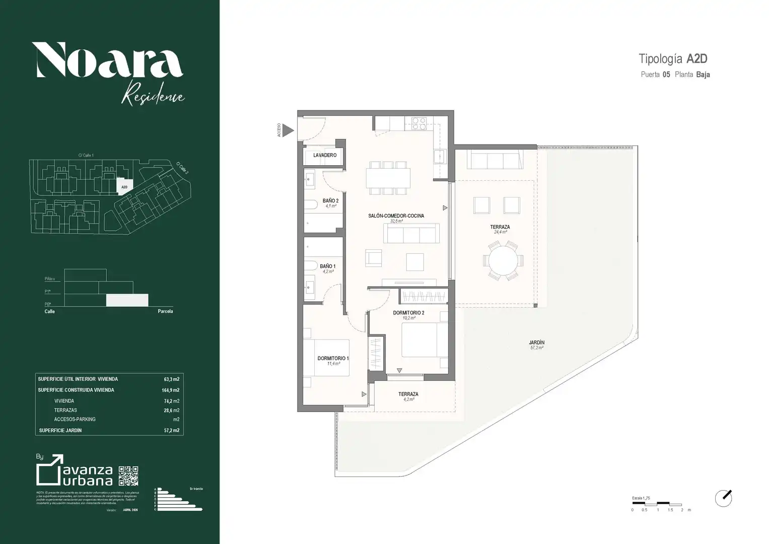 Las viviendas cuentan con distribuciones modernas y funcionales, con amplios espacios de día, grandes ventanales y acabados de alta calidad, incluyendo cocinas equipadas, climatización completa, armarios vestidos y baños totalmente equipados. Cada vivienda cuenta con plaza de garaje incluida y opción (con incremento de precio) de trastero.