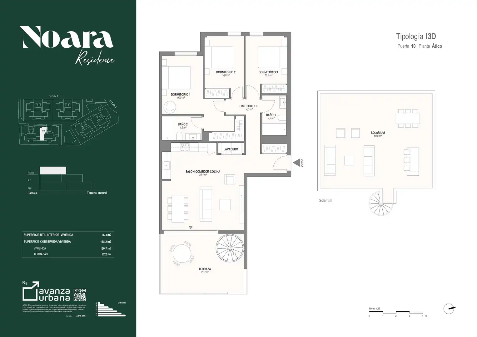 Las viviendas cuentan con distribuciones modernas y funcionales, con amplios espacios de día, grandes ventanales y acabados de alta calidad, incluyendo cocinas equipadas, climatización completa, armarios vestidos y baños totalmente equipados. Cada vivienda cuenta con plaza de garaje incluida y opción (con incremento de precio) de trastero.