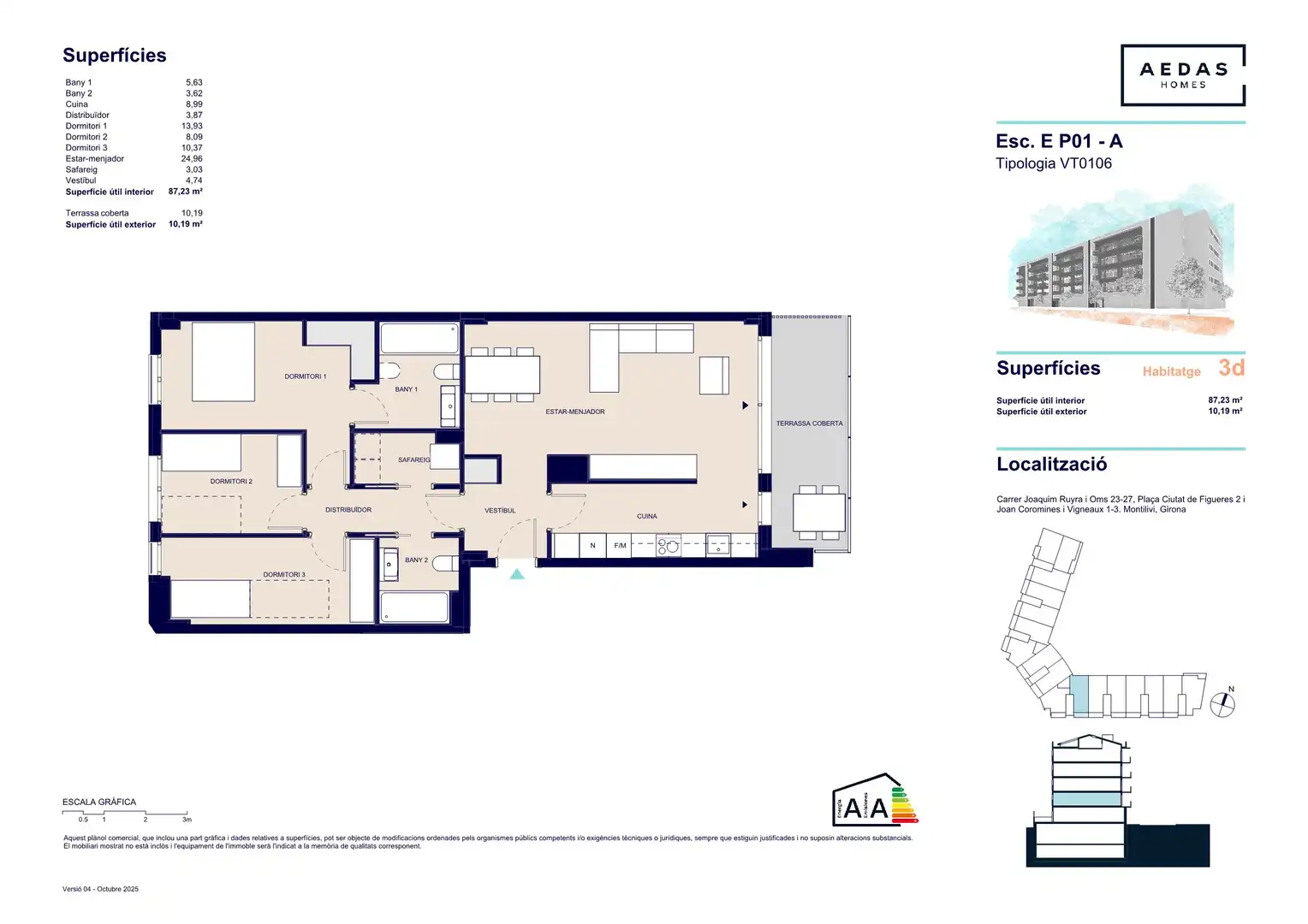Tu nueva casa se encuentra en el barrio de Montilivi, al este de Girona. Esta zona, totalmente consolidada, es ideal para quienes buscan residir a tan solo 15 minutos del centro histórico gerundense.