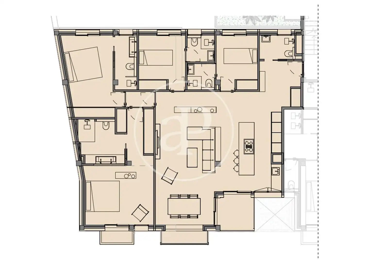 Planta superior con piscina y solárium privados para residentes.