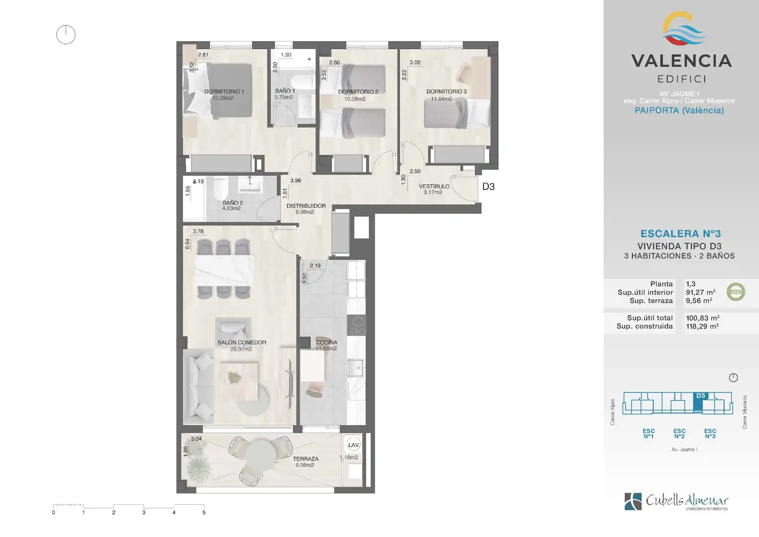 Vivienda de obra nueva en planta primera, ubicada en la calle Jaime I de Paiporta, frente a la pista de patinaje. 118 m2 distribuidos en salón comedor con balcón-terraza de 9 m2, cocina independiente. 3 dormitorios con armarios empotrados y 2 baños completos con plato de ducha. Plaza de aparcamiento y trastero incluido en el precio. Excelentes calidades. Las imágenes, son orientativas y buscan mostrar el estilo y calidades de la promoción, pudiendo no corresponderse exactamente con esta tipología de vivienda.