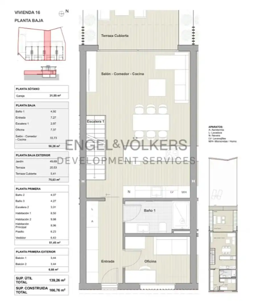 La promoción está compuesta por seis casas de tres dormitorios, tres baños completos y habitación adicional para uso como oficina o habitación de invitados. Disponen de dos balcones, terraza parcialmente cubierta, jardín, parking subterráneo, cocinas totalmente equipadas, cerramientos de alta eficiencia energética, sistema de aerotermia con aire acondicionado frío/calor por conductos, y suelos y techos de madera de calidad para una mayor insonorización y un ambiente acogedor. Entrega en el primer trimestre de 2025.