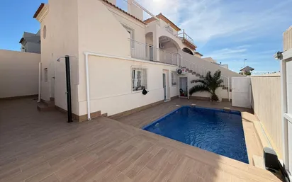 CASA ADOSADA REFORMADA DE DOS PLANTAS (APROX. 110 m2 + TERRAZAS) CON 4 DORMITORIOS, 4 BAÑOS, PISCINA PRIVADA, GRAN PISCINA COMUNITARIA Y A SOLO 800 M DE LA PLAYA. Casa adosada recién reformada de dos plantas en la popular zona de Miramar III (Torre del Moro), con una amplia piscina comunitaria y a solo 800 m de la Playa de la Mata - una de las playas más bonitas de la costa. Zona tranquila y agradable con varios parques pequeños y cerca del mar en Cabo Cervera. Numerosos restaurantes acogedores a poca distancia, supermercados cercanos y excelente transporte público con autobuses urbanos. ¡Una casa maravillosa para vivir todo el año! CARACTERÍSTICAS PRINCIPALES: – Casa adosada reformada, espaciosa y moderna a tan solo 800 m de la Playa de la Mata. – En la parte delantera: Amplia terraza con plaza de aparcamiento y una pequeña piscina privada. – Planta baja: Amplio salón, 2 dormitorios grandes y 2 baños. – Planta alta: Amplia cocina con comedor y acceso a un gran balcón, 2 dormitorios y 2 baños. – Azotea: Amplia terraza (aprox. 40 m2) con magníficas vistas. – Completamente reformada: todo está en perfecto estado y lista para entrar a vivir. OTRAS VENTAJAS: – La casa forma parte de Miramar III y cuenta con una gran piscina comunitaria. – Aire acondicionado moderno (bombas de fri/calor aerotérmicas) en ambas plantas. – Cerca de varios supermercados (Aldi a 300 m, Mercadona a 500 m). – Colegios para todas las edades a poca distancia. – Excelente transporte público con autobuses urbanos: parada a solo 250 m. La casa, construida originalmente en 1997, está completamente renovada y lista para entrar a vivir. ¡Todo está en perfecto estado! La casa está ubicada en Miramar III en Torre del Moro, junto a Cabo Cervera y a solo 800 m de la Playa de La Mata. La zona, que consta de casas adosadas y villas, es un área agradable y tranquila, popular tanto entre familias con niños que residen allí todo el año como entre turistas. A poca distancia a pie encontrará numerosos restaurantes, un nuevo supermercado Aldi y, en el centro comercial Torremarina, a solo 500 m, un Mercadona, farmacia, banco y todo lo que pueda necesitar. El centro de Torrevieja está a unos 3,5 km al sur, pero con solo 250 m hasta la parada de autobús se puede llegar fácilmente a cualquier lugar de Torrevieja con los autobuses urbanos. Y en Torrevieja, con más de 110.000 habitantes y la tercera ciudad más grande de la provincia de Alicante, encontrará una completa oferta comercial, de ocio, instalaciones deportivas, hospitales, colegios e incluso autobuses directos al aeropuerto de Alicante (45 min). No te pierdas esta espaciosa casa adosada reformada. Una casa maravillosa para vivir todo el año. ¡Contáctanos hoy para una visita!