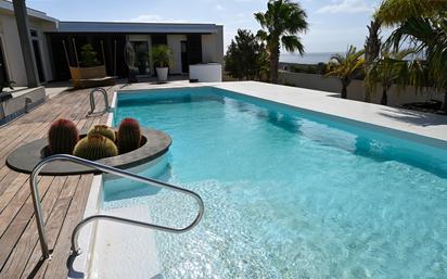 Ubicada en el exclusivo puerto deportivo de Puerto Calero, esta exquisita villa ofrece una cuidada combinación de lujo, amplitud y carácter arquitectónico, todo ello realzado por impresionantes vistas al mar y a las montañas. La vivienda principal dispone de tres amplios dormitorios con baño en suite, a los que se suma un apartamento independiente, ideal para invitados o familiares, que aporta una gran versatilidad y privacidad. Desde el primer momento, la propiedad transmite una presencia imponente. Su fachada destaca desde la calle y se complementa con un amplio acceso privado y un garaje subterráneo, que aportan comodidad y discreción. La entrada da paso a un elegante espacio de estar de concepto abierto, inundado de luz natural y decorado con un gusto exquisito. El salón a distinto nivel añade un toque distintivo y acogedor, convirtiéndose en el corazón del hogar. Junto a él, un comedor formal ofrece el entorno perfecto para recibir a familiares y amigos. La cocina familiar, amplia y moderna, combina funcionalidad y diseño, con electrodomésticos de alta gama, acabados de calidad y una isla central ideal para cocinar, desayunar o compartir momentos en compañía. Anexa a la cocina se encuentra una zona de lavandería y despensa, que proporciona espacio de almacenamiento adicional y mantiene las áreas principales despejadas—un elemento esencial para familias o estancias prolongadas. Cada dormitorio ha sido diseñado con generosas dimensiones, mobiliario elegante y su propio baño en suite, garantizando confort e intimidad. En el exterior, la villa continúa sorprendiendo. Una gran piscina privada ocupa el centro de la zona exterior, rodeada de tarima moderna, vegetación cuidadosamente seleccionada y amplias terrazas. Desde cualquier punto se disfrutan vistas abiertas al mar y a las montañas, creando un entorno ideal para comidas al aire libre, reuniones sociales o momentos de descanso. Una zona cubierta junto a la piscina ofrece un espacio sombreado perfecto para relajarse durante todo el día. El apartamento independiente dispone de salón, dormitorio y baño propios, convirtiéndose en una opción ideal para invitados que buscan privacidad o para estancias familiares más largas. Una propiedad con personalidad, elegancia y un carácter único, que representa una oportunidad excepcional para adquirir una villa de lujo en una de las zonas más exclusivas y demandadas de Lanzarote.
