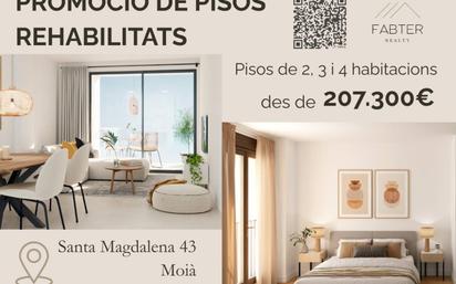 FABTER REALTY presenta esta promoción de viviendas totalmente rehabilitadas en C/ Santa Magdalena, 43 (Moià), una oportunidad única para estrenar vivienda en un edificio renovado con calidades actuales y diferentes tipologías pensadas para adaptarse a todo tipo de necesidades. La promoción está compuesta por 6 viviendas distribuidas en planta primera, segunda y un espectacular dúplex en planta tercera, con opciones de 1, 2, 3 y hasta 4 dormitorios, superficies amplias y distribuciones funcionales que combinan comodidad, luz natural y diseño contemporáneo. Todas las viviendas cuentan con: - Suelos de parquet - Ventanas de aluminio Cortizo con rotura de puente térmico - Calefacción mediante radiadores con caldera de gas natural - Climatización por bomba de calor - Cocinas equipadas con mobiliario Kvik y electrodomésticos Balay - Todo ello pensado para garantizar confort, eficiencia energética y durabilidad. Extras y valor añadido: Edificio con ascensor, y posibilidad de adquirir plaza de parking y trastero, una ventaja clave tanto para residentes como para inversores. Precio desde: 207.300 € (El precio final puede variar según tipología, superficie y extras). En FABTER REALTY disponemos de toda la información detallada de las viviendas y estaremos encantados de asesorarte personalmente para encontrar la opción que mejor se adapte a tus necesidades.
