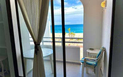 Se presenta una magnífica oportunidad para adquirir un apartamento en última planta, situado en tercera planta y en primera línea de mar, dentro de una comunidad cerrada, segura y muy bien cuidada, que además dispone de ascensor, un valor añadido poco habitual en propiedades tan cercanas a la costa. La vivienda destaca especialmente por su privilegiada orientación este, que permite disfrutar de impresionantes vistas abiertas al mar desde su fachada principal, mientras que desde la parte posterior se aprecian agradables vistas a la montaña. Esta doble orientación garantiza una excelente entrada de luz natural durante todo el día, así como una óptima ventilación cruzada, aportando frescor y confort a la vivienda incluso en los meses más cálidos. Su ubicación es inmejorable, ya que permite disfrutar de un entorno dinámico y cómodo, con bares, tiendas, restaurantes y servicios a escasos pasos, sin renunciar a la tranquilidad y privacidad que ofrece la propia comunidad. Una combinación perfecta entre vida costera, comodidad y descanso. La distribución interior comienza con un hall de entrada, equipado con portero automático y una práctica zona de almacenaje, ideal para mantener el orden desde el primer momento. A continuación, encontramos dos amplios dormitorios dobles, ambos con armarios empotrados, diseñados para ofrecer comodidad y espacio tanto para uso habitual como vacacional. El baño completo se encuentra en muy buen estado y resulta funcional y cómodo. La cocina independiente, bien equipada, conserva su estilo original, ofreciendo un espacio práctico y con posibilidades de actualización según las preferencias del nuevo propietario. El corazón de la vivienda es su salón-comedor, un espacio luminoso y acogedor que conecta directamente con la terraza principal. Desde aquí se disfrutan vistas frontales al mar, convirtiéndose en el lugar perfecto para relajarse, desayunar o simplemente contemplar inolvidables amaneceres frente al Mediterráneo. Como valor añadido, la propiedad incluye una plaza de garaje subterránea, situada en un complejo cercano, lo que garantiza comodidad y seguridad para el vehículo, especialmente en zonas de alta demanda. Además, los propietarios tienen acceso a una agradable piscina comunitaria, acompañada de una zona de solárium, ideal para descansar y disfrutar del clima durante todo el año. La vivienda cuenta con aire acondicionado y calefacción eléctrica individual, asegurando confort en cualquier estación. En definitiva, se trata de una propiedad muy completa, ideal tanto como segunda residencia frente al mar como inversión inmobiliaria, gracias a su ubicación en primera línea, sus vistas, sus servicios y su alto potencial de rentabilidad.