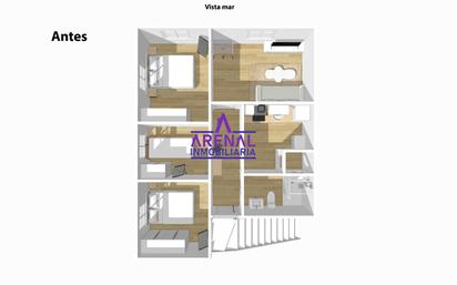 INMOBILIARIA ARENAL. Este piso de piedra para reformar, con vistas al puerto y a la estación de autobuses, ubicado en el primer piso de un pequeño edificio sin ascensor, se distribuye en tres posibles dormitorios ya que actualmente no existe la división entre 2 estancias antiguamente bien definidas, una alcoba con la posibilidad de convertirse en la cocina (que actualmente no tiene), además de contar con la sala y un baño. Destacan los balcones clásicos con vistas al mar o los suelos de baldosa hidráulica que podrían recuperarse. La zona cuenta con facilidades de aparcamiento tanto enfrente como en las calles aledañas detrás del edificio.