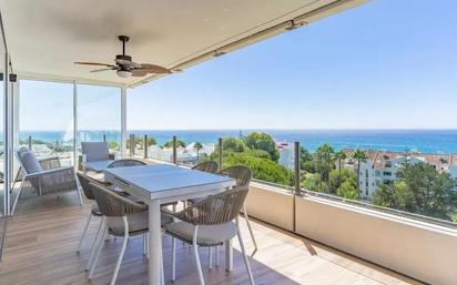 Ubicado en el único rascacielos de Marbella, un edificio emblemático completamente modernizado en 2022, esta exclusiva vivienda destaca por su luminoso diseño de concepto abierto. El amplio salón-comedor se integra con una sofisticada cocina contemporánea totalmente equipada, creando un espacio moderno y funcional. Los tres dormitorios han sido diseñados con un estilo elegante y confortable, acompañados de baños actuales con acabados de alta calidad. Uno de los grandes protagonistas es su magnífica terraza de 28 m², un espacio privilegiado para relajarse, disfrutar de comidas al aire libre y contemplar el espectacular entorno costero. La ubicación es inmejorable: a poca distancia de playas de arena fina, a solo 2 minutos de Río Real Golf, y a 5 minutos en coche del centro de Marbella y del centro comercial La Cañada. Puerto Banús se encuentra a tan solo 12 minutos. La propiedad incluye plaza de garaje subterránea privada y trastero, aportando comodidad y valor añadido.