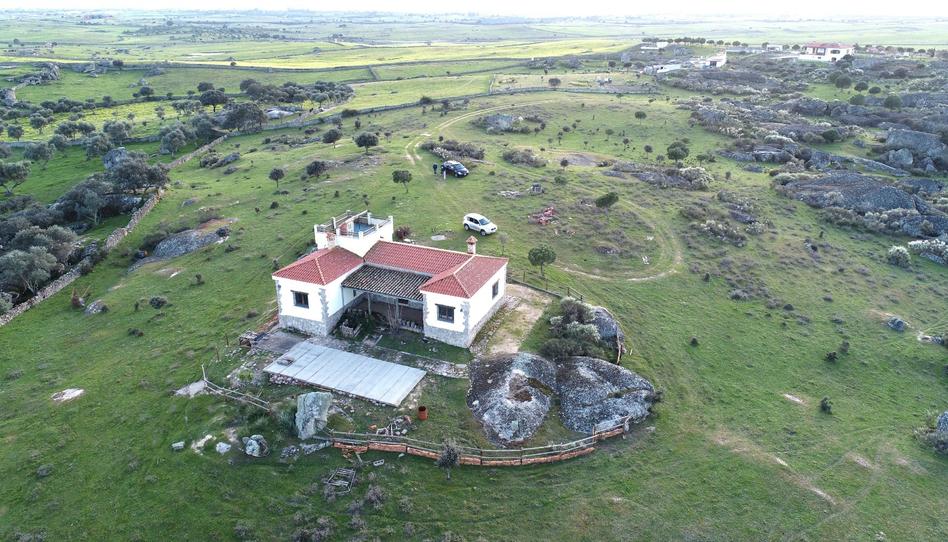 Parcela de 6 hectáreas cerca de Cáceres. Zona de fácil acceso desde la N-630. Terreno muy bonito reforestado de encinas, alcornoques y pinos. Casa de nueva construcción con un amplio salón con cocina americana, dos amplias habitaciones y baño completo. En el salón hay una estufa-chimenea que ambienta toda la vivienda. Construida con materiales de primera calidad (alicatados, suelos, ventanas de aluminio con doble acristalamiento, etc…). Placas solares que suministran electricidad de sobra para toda la casa. Gran aljibe de agua. La casa tiene un porche cubierto con muy bonitas vistas. Vivienda semiamueblada. Parcela totalmente vallada con dos accesos por cancela metálica. Un lugar fantástico para pasar grandes momentos.