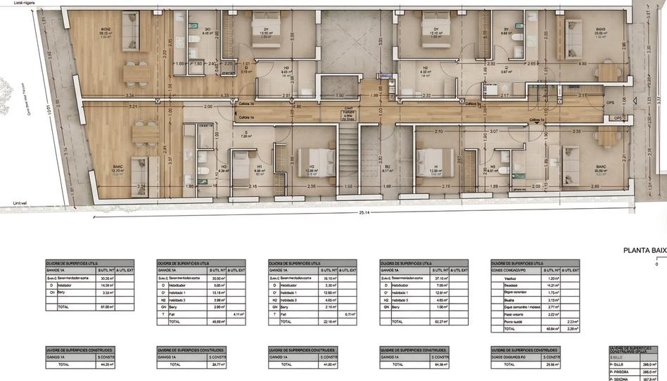 Tiene licencia pagada y proyecto para 12 pisos, unos 4 pisos por planta de una media de unos 65 m2 construidos cada uno.