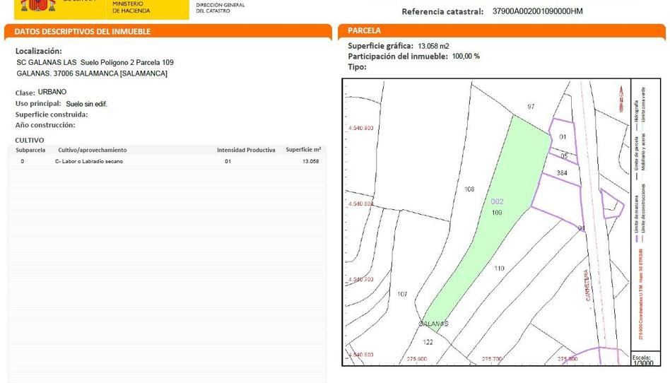 Está incluido en el sector LAS GALANAS, con una edificabilidad muy alta, de 4.500 m2/Ha, por lo que permitirá edificar 58 viviendas es este terreno.