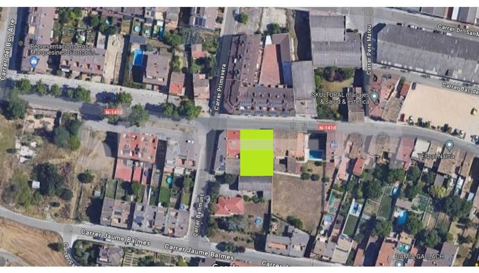 Solar en venta en el centro de Calldetenes de 540 m² donde se pueden construir viviendas unifamiliares o plurifamiliares de hasta 6 entidades diferentes de entre 76 y 110 m², con amplias terrazas, un local de 111 m² y hasta 8 plazas de parking, con un total de superficie construida aproximada de 1050 m2.