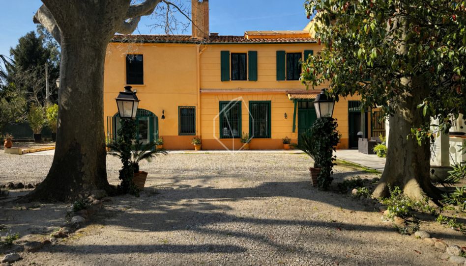 Ubicada a només cinc minuts del centre de Perpinyà, aquesta propietat gaudeix d’un ambient tranquil i verd, al cor d’una bonica parcel·la arbrada d’uns 8.500 m², magníficament ombrejada per majestuosos plàtans que donen al lloc una atmosfera típica i relaxant.