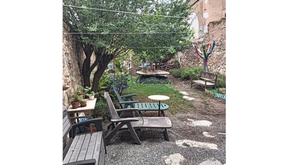 - Patio con zona verde, árboles frutales, pozo con bomba, barbacoa y mobiliario de jardín