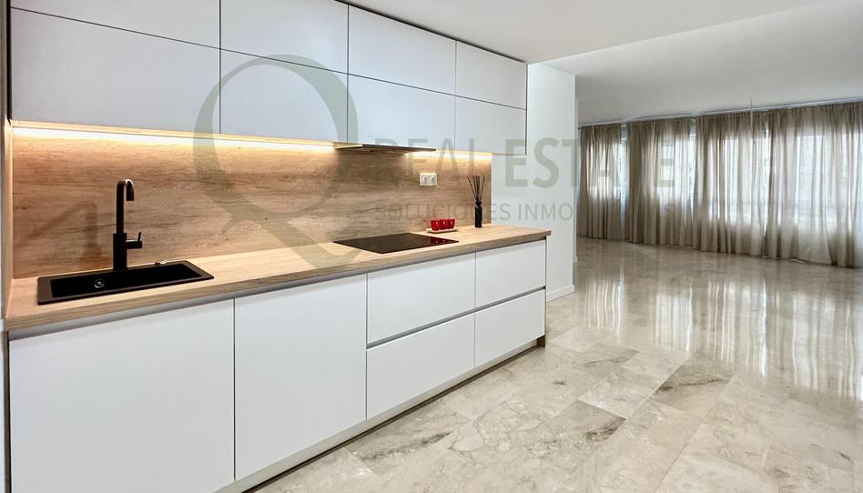 Luminoso salón-comedor con cocina abierta, de estilo moderno y acabados de alta calidad.