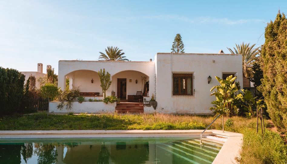 Chalet independiente en Retamar, a las puertas del Cabo de Gata y a pocos minutos de la playa, con patio interior, piscina privada y espacios pensados para disfrutar del clima de Almería todo el año.La vivienda se ubica sobre una parcela de 982 m² y cuenta con 186 m² construidos, distribuidos de forma muy especial alrededor de un patio interior con aljibe, que actúa como corazón de la casa y como distribuidor natural de las distintas estancias, aportando luz y personalidad a toda la vivienda.