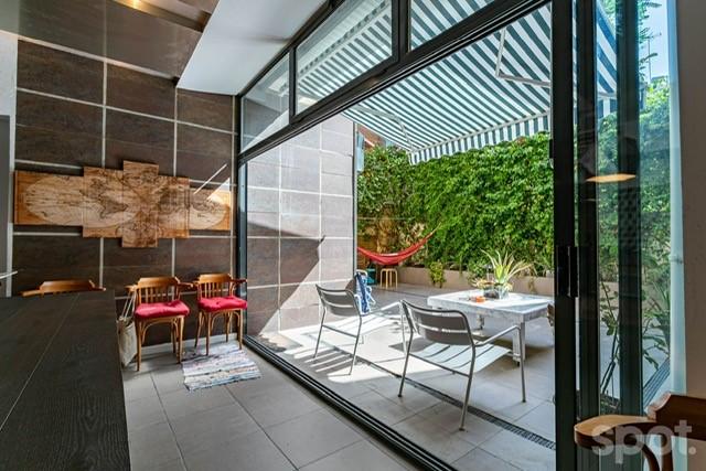 Una gran cocina abierta y un salon con diferentes ambientes y con salida a una preciosa terraza en el centro de barcelona con la sensacion de vivir en una zona sin ruidos, sin trafico, sin vecinos.