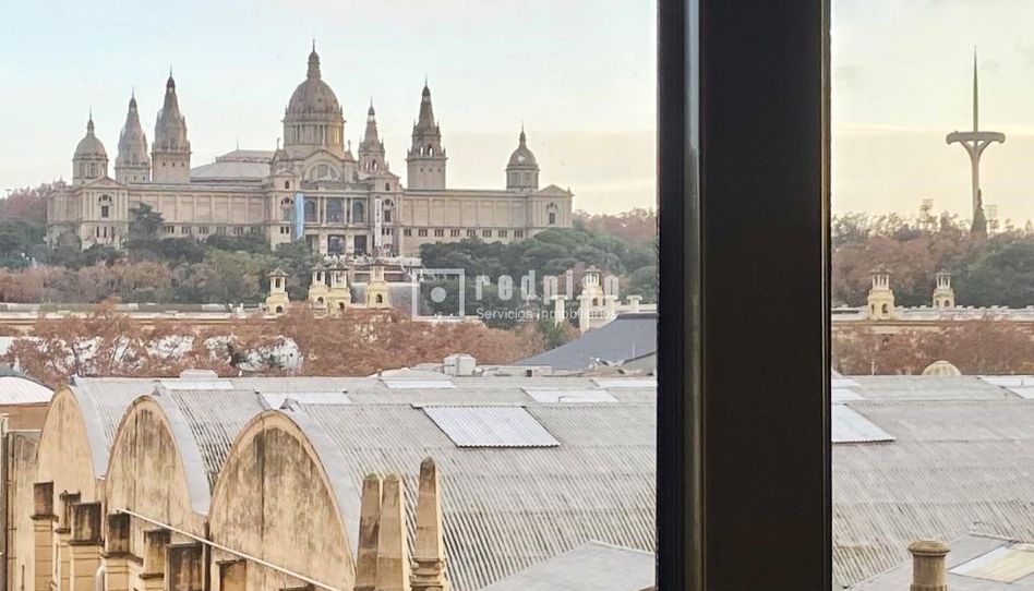 Redpiso presenta a la venta este espectacular piso sobre la Avenida del Paral•lel, en el codiciado barrio de Sant Antoni y justo al lado de Plaza España. La vivienda cuenta con 93 metros cuadrados y es completamente exterior, lo que garantiza una luminosidad excepcional durante todo el día gracias a su orientación sur. Desde el piso se disfruta de impresionantes vistas directas al Museu Nacional d’Art de Catalunya, las Torres Venecianas, Plaza España, la Fuente Mágica y todo el entorno de Montjuïc.