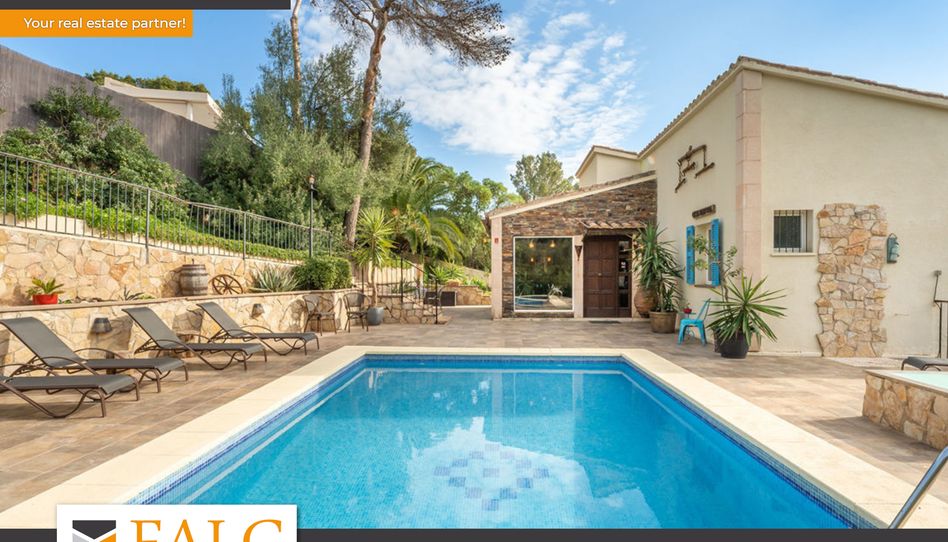 Este soleado chalet en Costa den Blanes, con piscina y estupendas vistas al mar y a la zona verde, se encuentra en el suroeste de la isla de Mallorca. La propiedad se encuentra en una parcela de aprox. 1000 m2 y ofrece una superficie habitable de aprox. 170 m2, distribuidos en 2 plantas de la siguiente manera: Un amplio salón con chimenea que conduce al comedor y a una cocina americana, 4 dormitorios dobles con armarios empotrados, 3 baños (uno de ellos en suite, cada uno con jacuzzi, bañera o ducha) y un lavadero. En el exterior encontramos una gran terraza rodeada de árboles con piscina privada y una zona chill-out que garantiza la más absoluta tranquilidad y confort. Además, la villa cuenta con extras como aire acondicionado, ventanas de aluminio con doble acristalamiento y suelos de parquet y baldosas. La atractiva propiedad también incluye una casa de invitados con baño propio. Este bonito chalet en Costa den Blanes está situado en una zona tranquila, a 15 minutos del centro de Palma y a sólo 5 minutos en coche de la playa. Es una zona privilegiada cerca del famoso puerto de Portals Nous con exquisitos restaurantes y tiendas de marca.