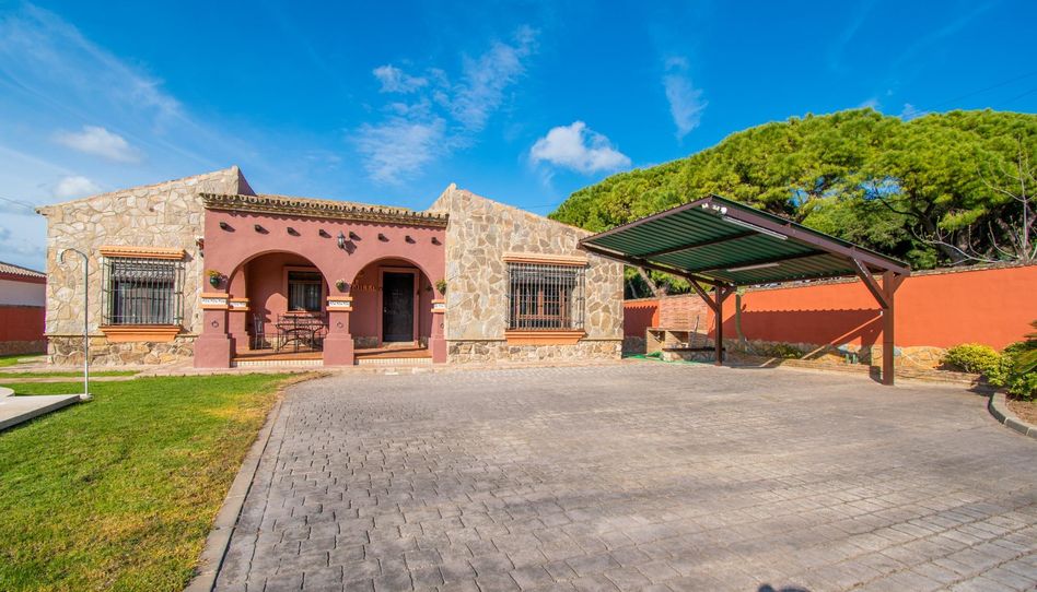 Chalet en Chiclana situado en la zona de la Rana Verde, a 5 Km de la playa La Barrosa, esta propiedad es ideal para disfrutar del sol y el mar sin renunciar a las comodidades urbanas, ya que se encuentra cerca de supermercados, farmacias y cafeterías, con fácil acceso a la autovía y a cinco minutos en coche del centro de la ciudad. Cuenta con 175 m2 construidos distribuidos en 5 dormitorios equipados con armarios empotrados, 3 baños, amplio salón con chimenea perfecta para los días frescos, así como una amplia cocina que incluye zona destinada a comedor y despensa con salida directa hacia el porche trasero donde podrás relajarte o recibir visitas. Cuenta además con porche delantero, espacio techado destinado para aparcamiento de vehículo, piscina con jardín y zona de barbacoa. Parcela de 1.000 m2.