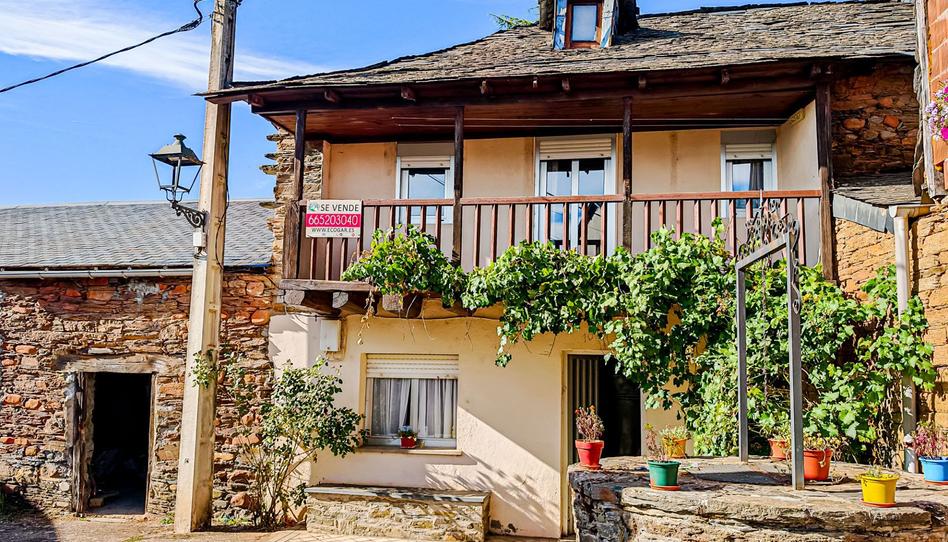 La casa conserva su estructura original de piedra, aunque por fuera fue recubierta con cemento (ideal para restaurar y recuperar su esencia). Destaca su corredor típico berciano de madera y un tejado en buen estado.