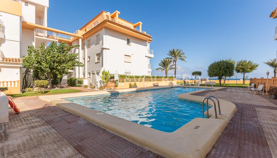 Este acogedor apartamento en planta baja se encuentra en una ubicación privilegiada, en primera línea de playa en la zona de Las Marinas, Dénia. Situado en una urbanización cuidada con piscina y jardines comunitarios, ofrece la comodidad de vivir frente al mar y disfrutar de unas vistas únicas desde su terraza privada. Con 58 m² construidos, dispone de un buen salón-comedor, cocina independiente, dos dormitorios y un baño completo, la mayoría de las estancias con ventiladores de techo incluidos. Además, cuenta con plaza de aparcamiento incluida en el precio. Su orientación este garantiza luz natural durante gran parte del día, convirtiéndolo en una opción ideal tanto para vacaciones como para residencia habitual. Construido en 1993, se encuentra en buen estado y listo para entrar a vivir. Una oportunidad excelente para quienes buscan tranquilidad, confort y la proximidad del mar en una de las zonas más demandadas de la Costa Blanca.