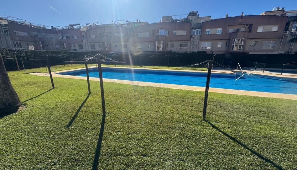 El patio privado ofrece vistas directas a las zonas comunes, que incluyen piscina comunitaria, pistas deportivas y amplias zonas verdes muy cuidadas.