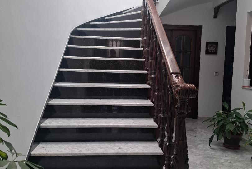 Subiendo las espectaculares escaleras, encontramos en la primera planta las 4 habitaciones, en las que en dos de ellas cabe perfectamente cama de matrimonio, tenemos también un baño de unos 10 metros cuadrados con bañera jacuzzi y armario toallero.