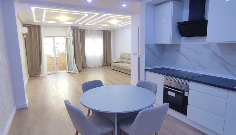 El pasillo distribuye el acceso a tres habitaciones espaciosas y dos baños completos, ambos reformados con materiales modernos y platos de ducha de última generación. La vivienda dispone una práctica galería y balcón. Cuenta con paredes lisas, instalación de electricidad y fontanería nuevas, carpintería interior lacada y un mobiliario cuidadosamente seleccionado, ya que el piso se entrega casi completamente amueblado. Además ofrece la comodidad añadida de tener la opción de alquilar una plaza de garaje en la misma finca. Ubicada a un paso de la Avenida de la Libertad, a 10 minutos andando hasta el Centro comercial Aljub y a unos tres minutos de la Estación de tren. Una propiedad única, a estrenar este 2026, ideal para quienes buscan modernidad, amplitud y una ubicación inmejorable.