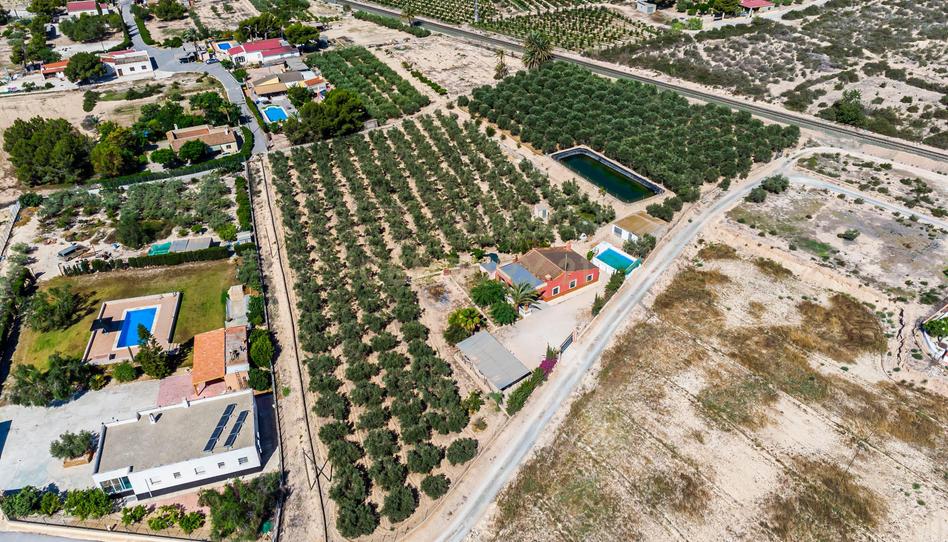 Se vende chalet independiente de planta baja en la partida de Matola, en el término de Elche con varias dependencias independientes, piscina independiente construido sobre una parcela rustica de unos 11.000 m2
