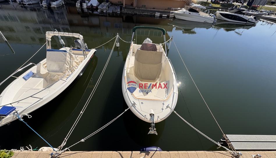 EH17-Empuriabrava, Alberes, Casa. En el Sector Alberes encontramos esta bonita casa de pescadores, muy acogedora y con todas las comodidades que un amante de la navegación desea tener, la casa consta de 55 metros cuadrados, amarre de 10 x 4 metros, y un garaje de 15 m2. La casa se compone de dos plantas, en la planta baja, encontramos comedor con cocina abierta, un aseo, y la terraza con acceso al amarre y pantalán, donde disponemos de un pequeño trastero para guardar los enseres del barco. En la planta piso encontramos dos habitaciones dobles, una de ellas con una terraza cubierta y cerrada, que cabría la posibilidad de alojar una cama adicional, las dos habitaciones disponen de armarios empotrados y para terminar en la planta piso, disponemos también de un baño completo. En el conjunto de casas, la casa dispone de manera privada de un garaje cerrado con puerta automática, el garaje es apto para coches grandes. La casa dispone de aire acondicionado y como no, la joya de la corona, el amarre de 10 x 4 metros, todo un lujo para los amantes de la navegación, no dude en contactarnos si quiere visitar esta pieza especial.
