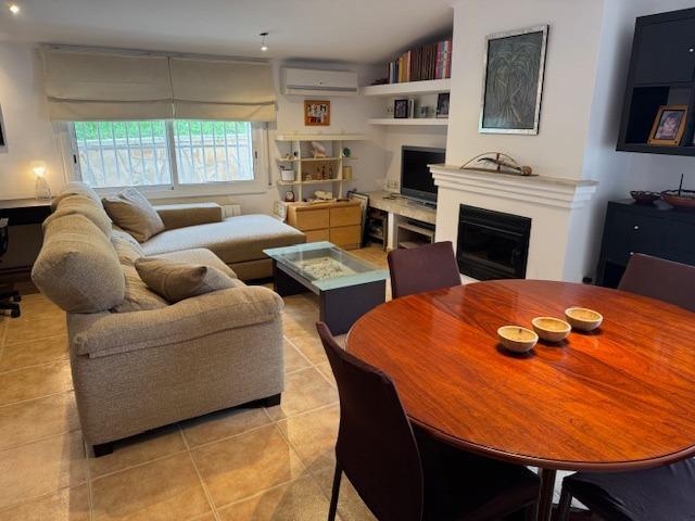 Acogedor salón-comedor con chimenea, perfecto para tus reuniones familiares.