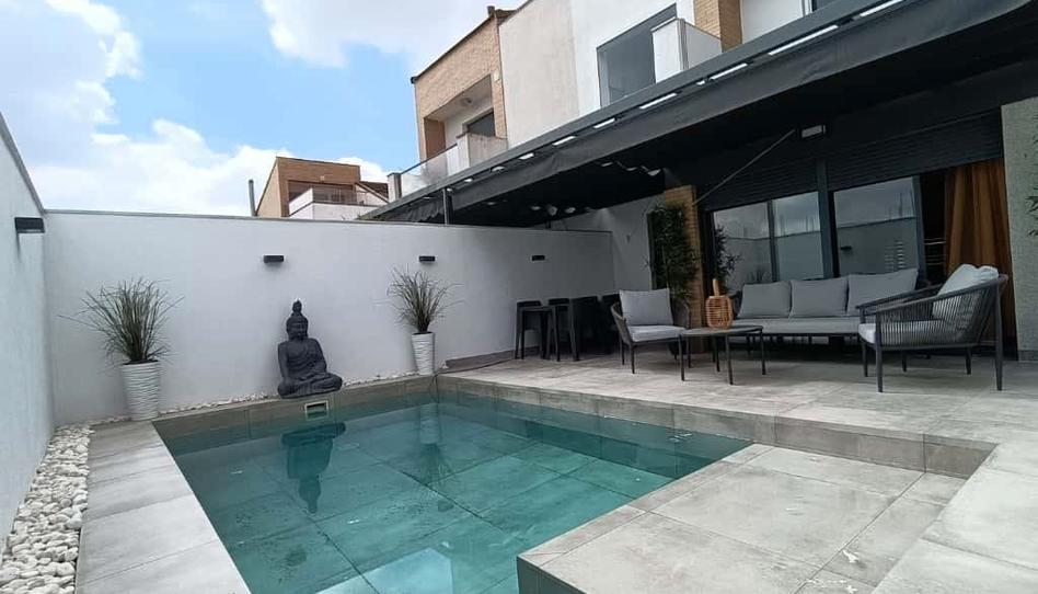 OPORTUNIDAD! EXTRAORDINARIO CHALET PAREADO DE DISEÑO CON PISCINA REFORMADO DEL AÑO 2024 CON CALIDADES EXCELENTES! 183 m2 construidos, 191 m2 de parcela, amplio salón comedor con chimenea de diseño, espectacular cocina amueblada con electrodomésticos de primera calidad, 4 dormitorios, 3 baños completos con mobiliario de diseño, dos terrazas, buhardilla, armarios empotrados y vestidor revestidos, aire acondicionado centralizado, suelo porcelámico gran formato, climalit, persianas motorizadas, instalación fotovoltáica para autoconsumo y agua caliente, domótica, garaje en superficie, leñero, porche trasero cubierto, gran piscina de diseño de primera calidad. Zona residencial muy tranquila cercana a colegios, supermercados, farmacias, zonas verdes y con rápida salida al nuevo enlace con la A-49. Mejor ver. OCASIÓN ÚNICA EN LA ZONA! Gastos de compraventa no incluidos en el precio.
